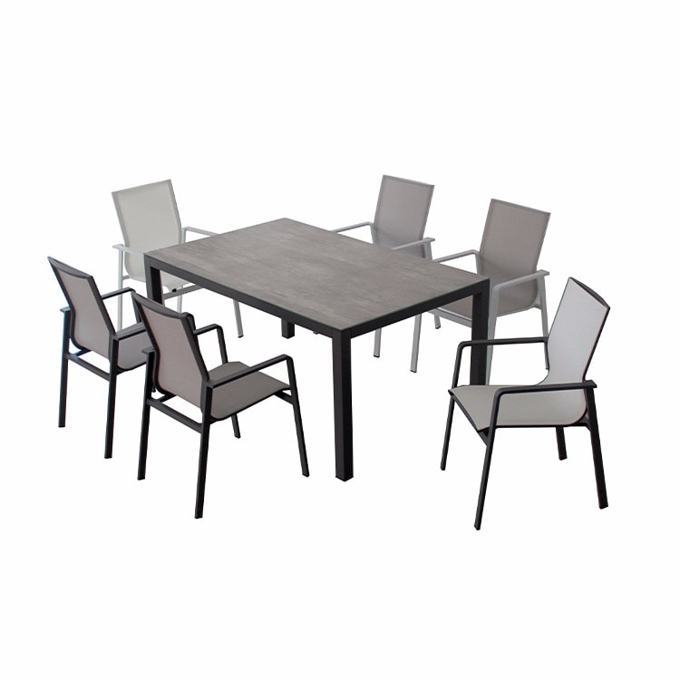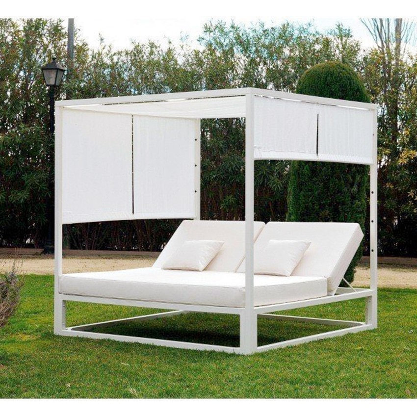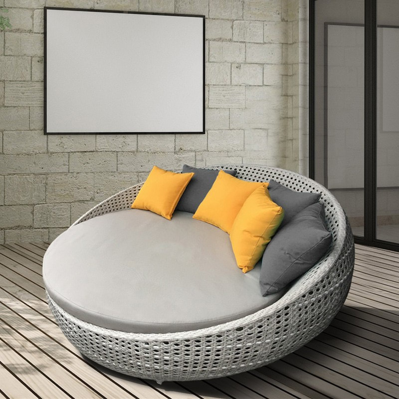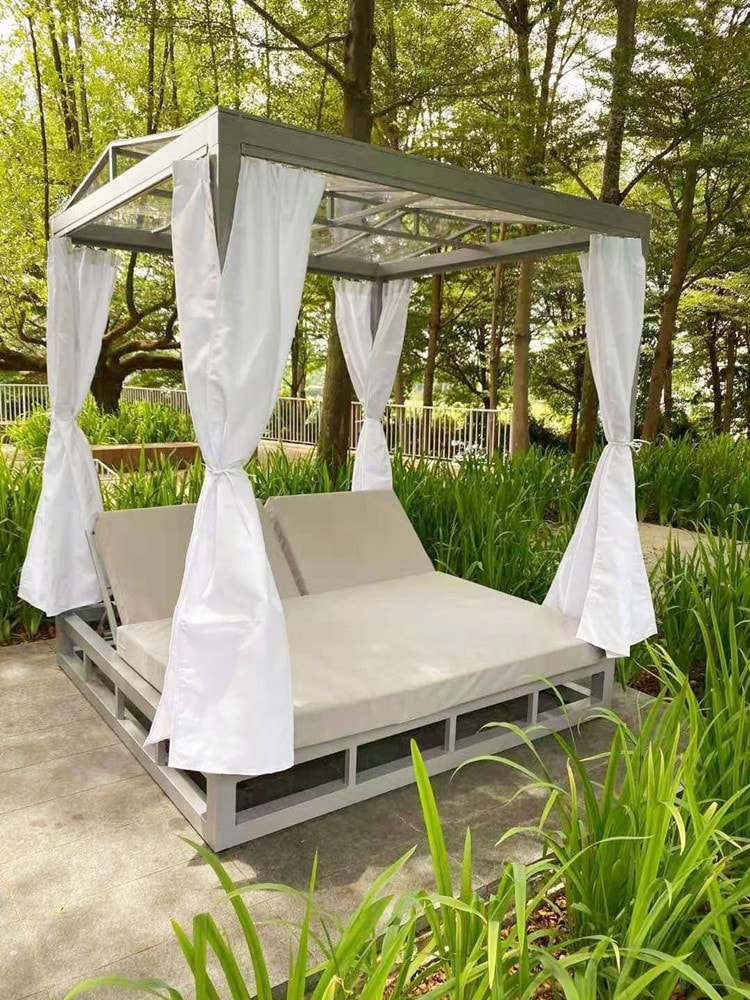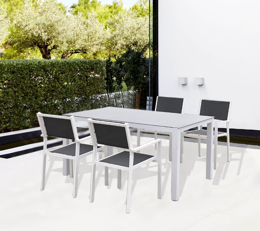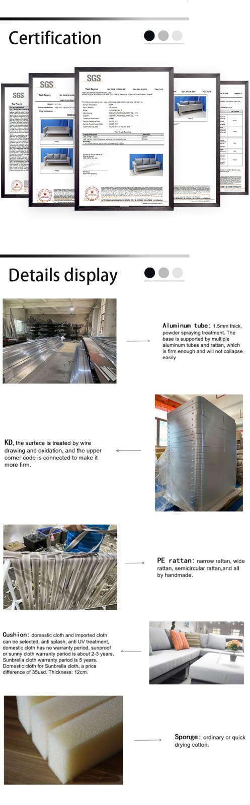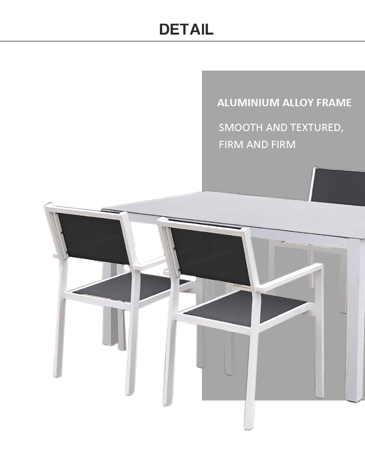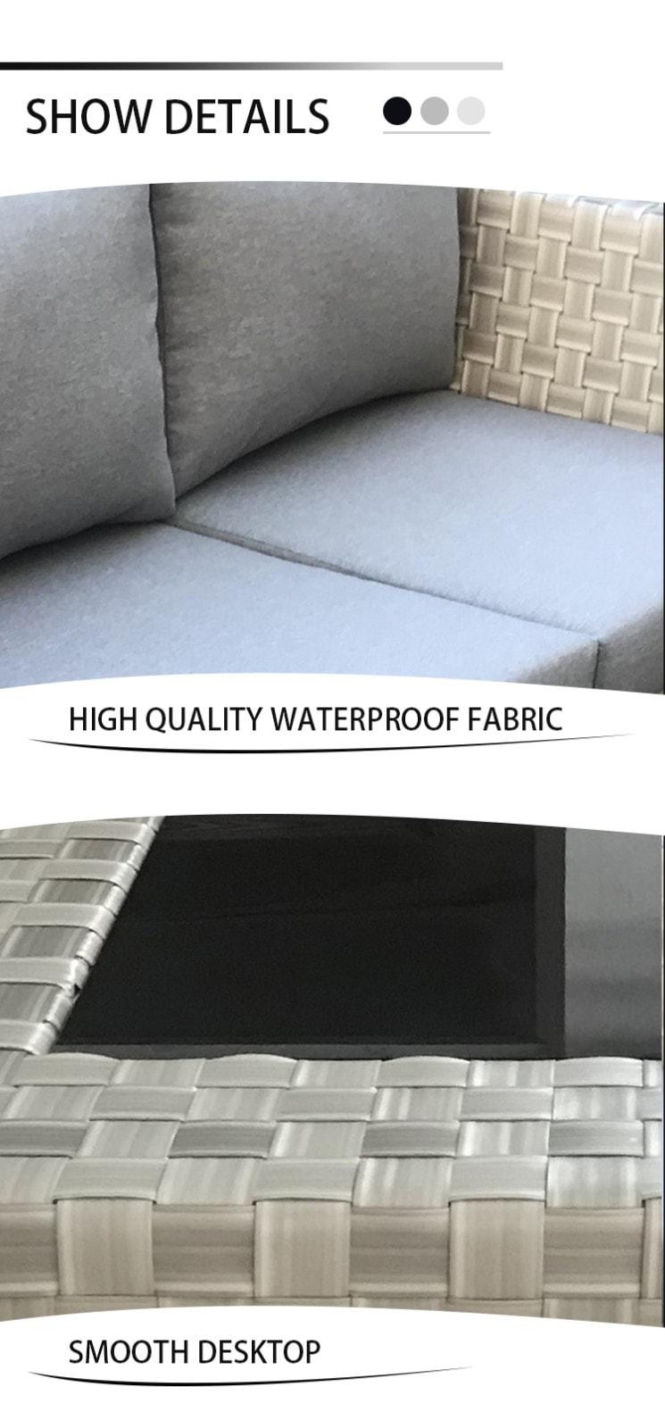 White Aluminum 4-Piece Outdoor Sofa Sets With blue Cushion. 4-piece set includes table, loveseat and two chairs with cushions. Made with durable iron frame and matte black finish. Designed for easy assembly and lasting entertainment